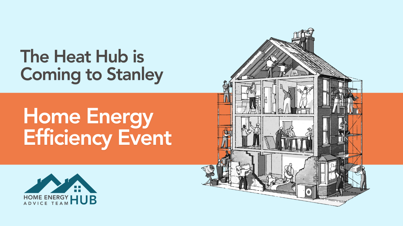 Come along to the H.E.A.T Hub’s Home Energy Efficiency Event in Stanley and discover how to make your home more sustainable for the future.